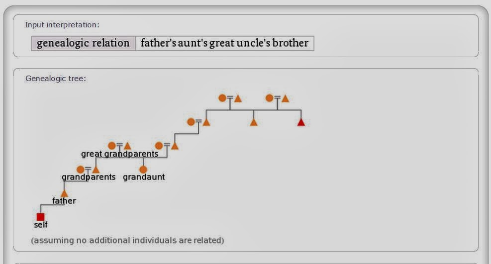 Its the type of question that now sends me to Wolfram Alpha. Go to www.wolframalpha.com/ and type in the query. The result is a diagram showing the relationship and a table including the information that the person may be a great great granduncle with a blood relationship fraction of 1/64 (1.5625%) or great great grandfather, 1/16 (6.25%).
