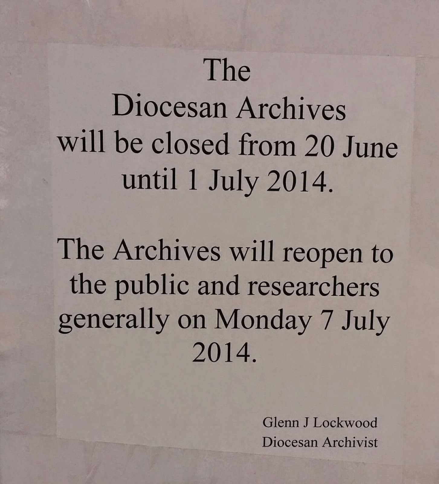 Anglican Diocese of Ottawa Archives closed