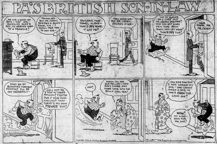The Ottawa Journal for November 1913 contains this comic strip playing to stereotypes of the British immigrant.