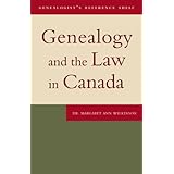 Genealogy and the Law in Canada, by Dr Margaret Ann Wilkinson, a 125 page paperback, published for the Ontario Genealogical Society by Dundurn Press (2010), ISBN 978-1-55488-452-0, is widely available at online bookstores.